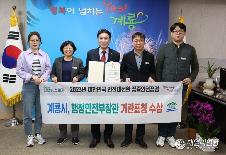 데일리연합(월간, 한국뉴스신문) 정호영기자 기자 | 계룡시는 ‘2023년도 대한민국 안전大전환 집중안점점검’ 에서 행정안전부장관 기관표창을 수상했다고 밝혔다.