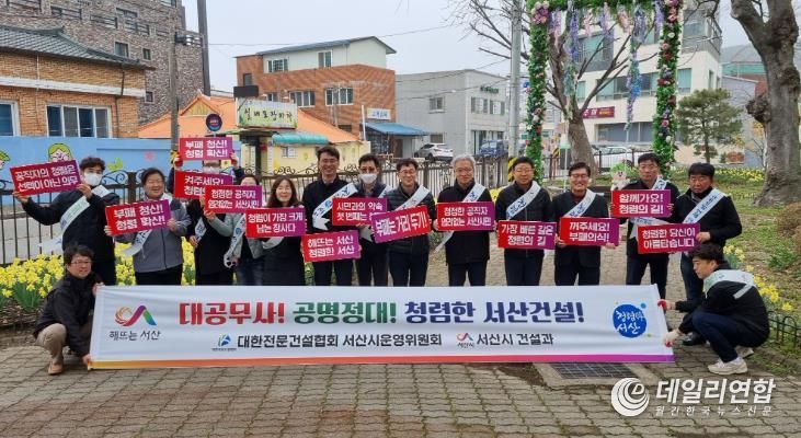 데일리연합(월간, 한국뉴스신문) 정호영기자 기자 | 서산시 건설과는 이날 김영호 건설도시국장, 대한전문건설협회 서산시운영위원회 조한선 위원장 및 회원, 감사담당관 직원 등 30여 명과 ‘2024년 새봄맞이 국토대청소의 날’을 맞아 거리를 청소하고 청렴 캠페인을 진행했다.
