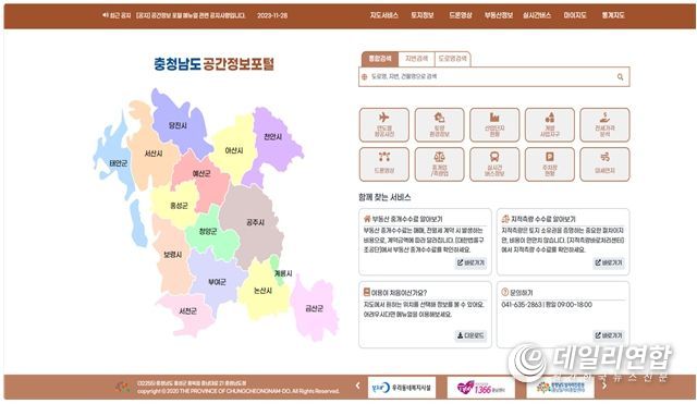 데일리연합(월간, 한국뉴스신문) 정호영기자 기자 | 충남도는 지난해 고도화 사업을 완료하고 지난달까지 시범 운영을 거쳐 새단장을 마친 ‘충청남도 공간정보 포털’을 1일부터 본격 운영한다고 밝혔다.