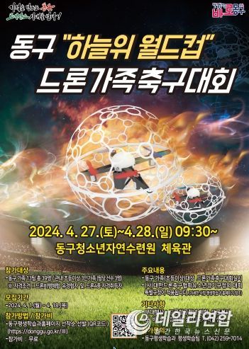 대전 동구는 오는 4월 27일부터 28일까지 2일간 동구 청소년 자연수련원에서 미래형 레저스포츠 저변 확대를 위한 ‘동구 드론가족축구대회’를 개최한다고 2일 밝혔다.