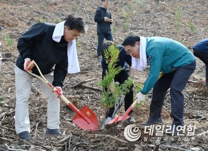 한편 이번 행사는 녹색 생태계 보존과 환경보호 의식을 일깨우기 위해 진행됐으며, 홍성군은 작년 산불로 피해입은 산림 1,337ha 중 1,122ha의 산림을 3년간 인공조림으로 복원할 계획이며, 올해 356ha 조림을 실시하고 있다.
