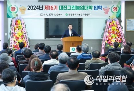 데일리연합(월간, 한국뉴스신문) 정호영기자 기자 | 대전시농업기술센터는 2일 대전농업의 미래를 이끌어갈 전문농업인 양성과정인 제16기 대전그린농업대학 입학식을 개최했다.