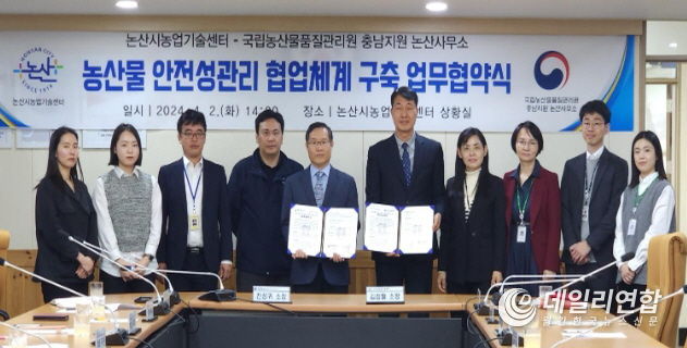 데일리연합(월간, 한국뉴스신문) 정호영기자 기자 | 논산시와 국립농산물품질관리원 충남지원 논산사무소가 지난 2일 논산시농업기술센터에서 논산시 농업 발전을 위하여‘농산물 안전성관리 협업체계 구축을 위한 업무협약’을 체결했다.