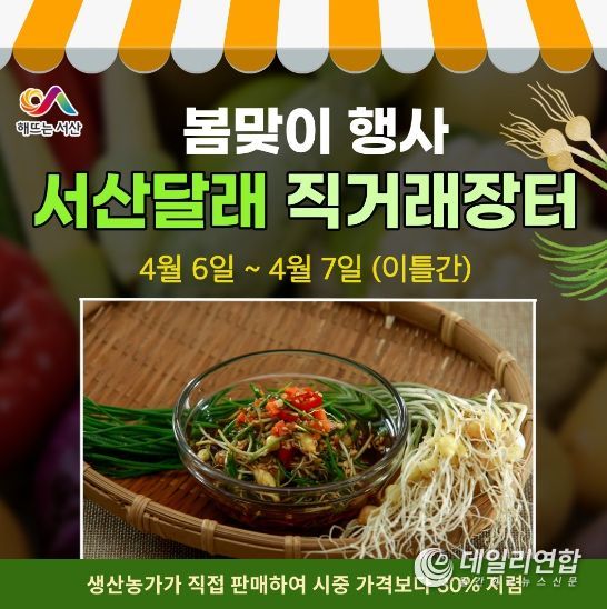 또한 서산 달래와 함께 농가에서 직접 재배한 고구마, 봄나물 등 산지 농산물도 함께 판매될 예정이다.