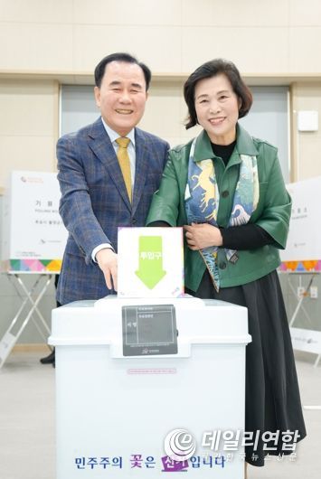 이날 김지철 교육감은 제79회 식목일을 맞아 홍북초등학교에서 진행되는 식목행사 참여에 앞서 부인 양현옥 여사와 함께 주소지인 홍북읍 사전투표소를 찾아 소중한 한 표를 행사했다.