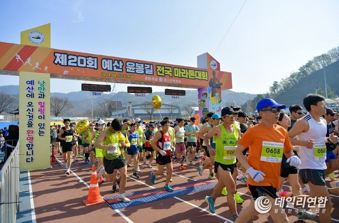 데일리연합(월간, 한국뉴스신문) 정호영기자 기자 | 예산군체육회와 중도일보가 공동으로 개최한 제20회 예산 윤봉길 전국마라톤대회가 7일 예산군 종합운동장과 벚꽃로 일원에서 성황리에 막을 내렸다.
