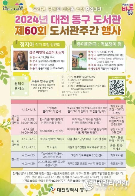 행사 관련 기타 자세한 사항은 대전 동구공공도서관 홈페이지에서 확인하거나 해당 도서관으로 문의하면 된다.
