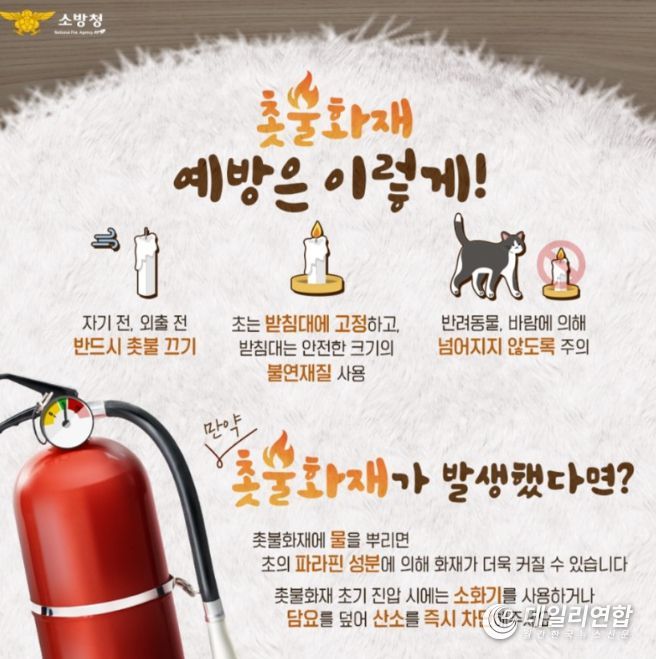 강기원 소방서장은 “촛불로 인한 화재의 대부분이 촛불을 켜둔 후 자리를 비우는 등 부주의에 의해 발생했다”라며 “화재 예방을 위한 기본적인 안전수칙을 반드시 지켜달라”고 전했다.