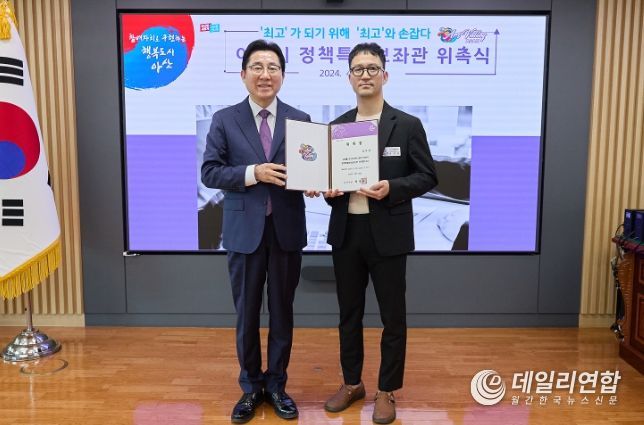 데일리연합(월간, 한국뉴스신문) 정호영기자 기자 | 아산시가 정책특별보좌관을 추가 위촉했다.