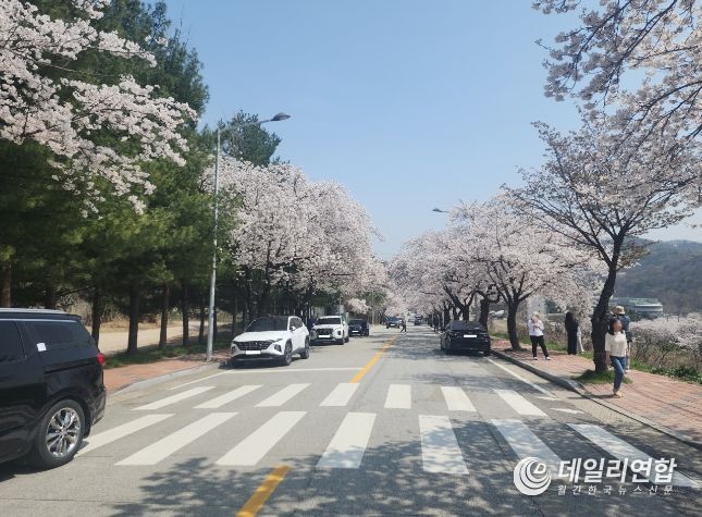 그런데, 1주일이 지난 주말 벚꽃이 만개하면서, 축제 기간에 즐기지 못한 벚꽃을 만끽하고자 다시 아산을 찾은 방문객들로 벚꽃길 주변은 주차 공간이 부족할 정도였다.