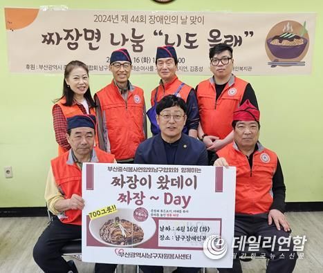 데일리연합(월간, 한국뉴스신문) 김희빈 기자 | 부산 남구와 부산남구자원봉사센터 부산광역시중식봉사연합회 남구협회는 제44회 장애인의 날을 맞이하여 4월 16일 남구장애인복지관에서 “짜장이 왔데이 짜장-day” 나눔 행사를 개최하였다.