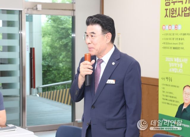데일리연합 (아이타임즈M 월간한국뉴스신문) 기자 | 이응우 계룡시장이 22일 계룡도서관을 찾아 2024년 문학기반시설 상주작가 지원사업인 ‘우리 시작(詩作)해요’에 운영 현황을 살펴보고 프로그램에 참여한 수강생을 격려했다.
