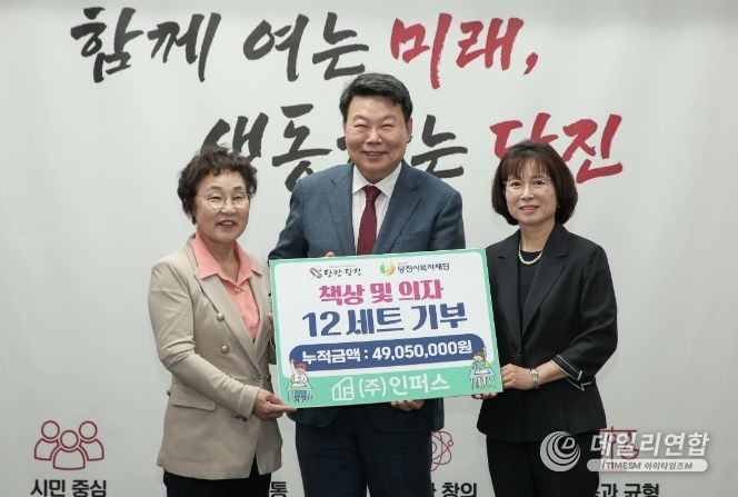 데일리연합 (아이타임즈M 월간한국뉴스신문) 기자 | 당진시에 있는 사무용 가구 업체 ㈜인퍼스는 28일 학습환경이 열악한 지역 내 아동들에게 전달해 달라며 책상․의자 12세트를 당진시 드림스타트에 기부했다.