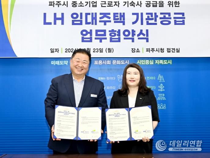 데일리연합 (SNSJTV. 아이타임즈M) 주기범 기자 | 파주시와 한국토지주택공사(LH) 경기북부지역본부가 엘에이치(LH)임대주택 공실을 중소기업 기숙사로 공급 지원하는 주택지원사업을 추진한다.