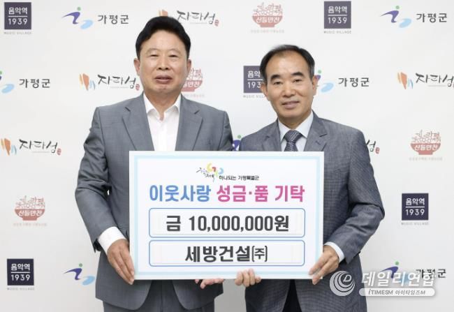 데일리연합 (SNSJTV. 아이타임즈M) 주기범 기자 | 세방건설㈜이 가평군의 어려운 이웃을 위해 1,000만 원의 통 큰 기부를 했다.