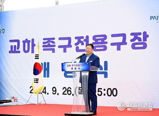 특히 교하동은 그간 지역 내 체육시설 부족으로 체육활동에 주민 불편이 적지 않았는데, 주민들의 오랜 숙원을 풀게 됐다. 특히 이번에 개장한 구장은 사계절 편리하게 운동을 즐길 수 있는 막구조로 된 돔형 구장으로 지역주민의 건강증진 및 생활체육을 활성화하는 데 큰 보탬이 될 것으로 기대된다.
