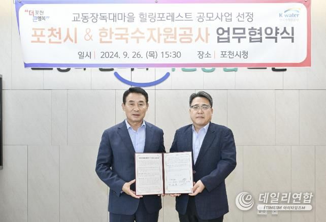 데일리연합 (SNSJTV. 아이타임즈M) 주기범 기자 | 포천시는 지난 26일 포천시청에서 한국수자원공사 연천․포천권지사와 댐 주변지역 공모사업의 원활한 추진을 위한 '상생․협력 업무협약'을 체결했다.