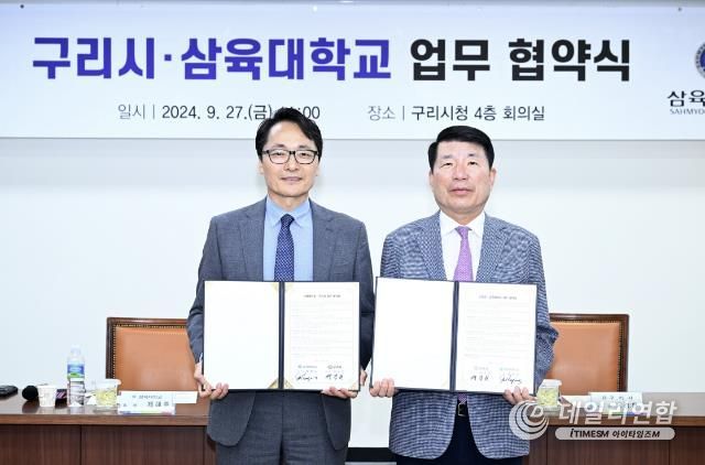 데일리연합 (SNSJTV. 아이타임즈M) 주기범 기자 | 구리시는 9월 27일 시청 4층 회의실에서 삼육대학교와 지역사회 발전과 사회적 가치 창출을 위한 업무협약을 체결했다.