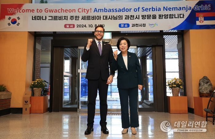 데일리연합 (SNSJTV. 아이타임즈M) 주기범 기자 | 과천시는 지난 8일 주한 세르비아 대사 네마냐 그르비치(Nemanja Grbić)가 과천시를 방문해 신계용 과천시장과 만남을 가졌다고 밝혔다.