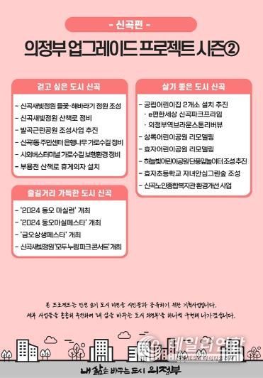 데일리연합 (SNSJTV. 아이타임즈M) 주기범 기자 | 의정부시는 시민들의 삶의 환경을 한 단계 개선하기 위한 ‘의정부 업그레이드 프로젝트’의 시즌2 신곡편을 11일 발표했다.