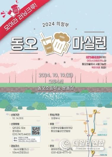의정부만의 아름다운 하천을 배경으로 펼쳐지는 ‘2024 동오 마실런’은 6km와 10km 두 가지 길(코스)로 진행한다. 참가자들은 동오역에서 출발해 장암동 무지개다리, 아일랜드캐슬 등 하천길을 달리며 건강도 챙기고 아름다운 풍경도 감상할 수 있다. 완주 기념품으로 아이스 아메리카노와 맥주 쿠폰을 제공하며, 행사 참여 업소를 방문하면 선착순으로 지역화폐 보상환급(페이백) 행사에 참여할 수 있다.