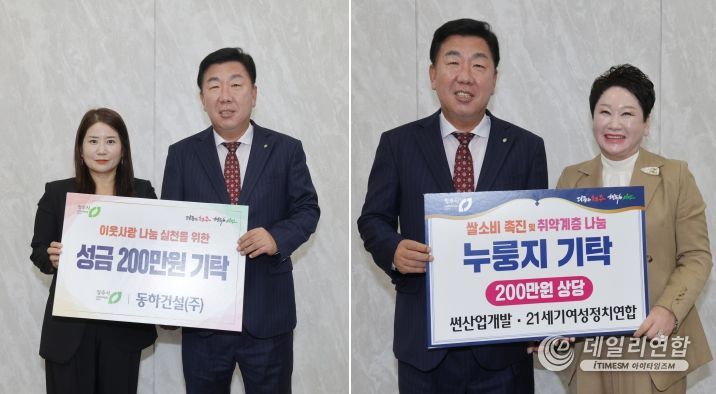 데일리연합 (SNSJTV. 아이타임즈M) 이성용 기자 | 동하건설(주)(대표 신귀일)과 21세기여성정치연합 청주시지부(회장 유현순)가 31일 지역의 어려운 이웃을 지원하기 위해 성금과 후원물품을 청주시에 기탁했다.
