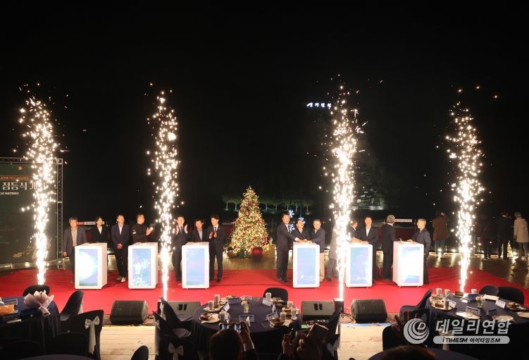 데일리연합 (SNSJTV. 아이타임즈M) 이성용 기자 | 진천군은 지난 3일 밤 올해 새롭게 조성한 농다리 폭포 전망 데크에서 100여 명이 참석한 가운데 크리스마스 점등식을 개최했다.