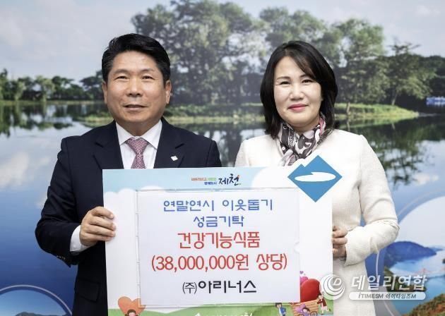 김창규 제천시장은 “제천의 한방천연물산업 선도기업인 ㈜아리너스의 따뜻한 나눔에 깊은 감사를 드리며, 이번 기부가 지역사회에 큰 도움이 될 것”이라고 인사를 전했다.