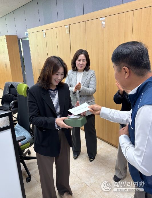 전국공무원노동조합 보은군지부는 좋은 결과를 바라는 마음을 담아 정진석 지부장이 지원금과 응원의 메시지가 담긴 간식을 직접 조합원에게 전달하며 수능 대박을 염원했다.