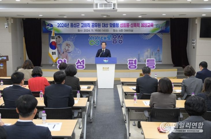 데일리연합 (SNSJTV. 아이타임즈M) 이성용 기자 | 음성군은 19일 군청 6층 대회의실에서 조병옥 군수를 비롯해 5급 이상 고위직 공무원을 대상으로 맞춤형 성희롱·성폭력 예방교육을 실시했다.