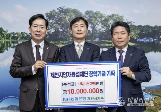 이날 기탁식에는 김창규 제천시장, 지중현 제천시인재육성재단 이사장을 비롯해 농협측에서는 박시원 지부장과 한수미 부지부장 등이 참석했다.