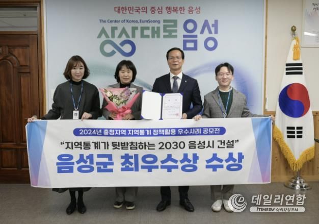데일리연합 (SNSJTV. 아이타임즈M) 이성용 기자 | 음성군은 충청지방통계청이 개최한 충청권 지역통계 업무발전 워크숍에서 ‘2024년 충청지역 지역통계 정책활용 우수사례 공모전’ 최우수상을 수상했다고 26일 밝혔다.