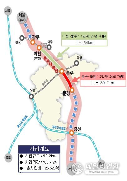 중부내륙선은 철도가 지나가지 않던 지역을 중심으로 총 2조 5천5백억 원의 사업비를 투입하여 93.2km를 잇는 철도 노선으로 2014년에 착공하여 1단계(이천~음성~충주/54km)와 2단계(충주~괴산~문경/39.2km)로 나누어 추진됐으며, 1단계 사업은 앞서 ΄21년에 개통했다.