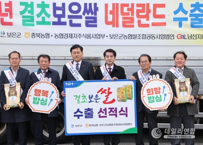 데일리연합 (SNSJTV. 아이타임즈M) 이성용 기자 | 충북 보은군의 결초보은 쌀이 네덜란드 수출길에 올랐다.