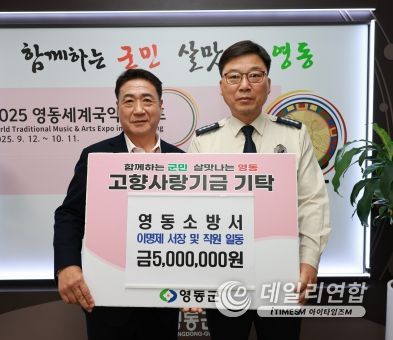 정영철 영동군수는 “영동소방서의 따뜻한 나눔에 깊이 감사드린다”며 “기탁된 기부금은 지역발전과 주민 복지를 위해 소중히 사용하겠다”고 밝혔다.