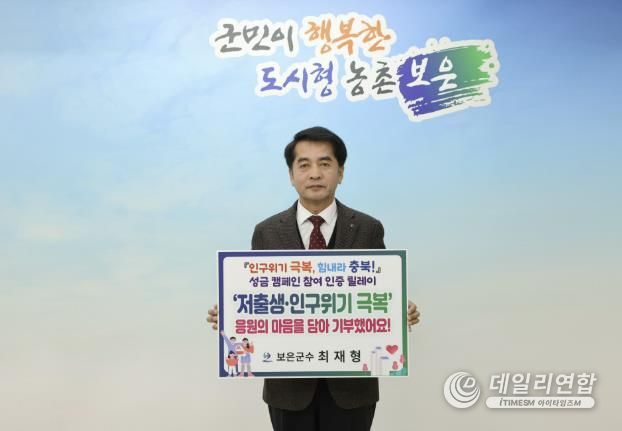 데일리연합 (SNSJTV. 아이타임즈M) 이성용 기자 | 보은군은 4일 ‘충북 인구위기 극복, 힘내라 충북!’ 성금 캠페인 참여 인증 릴레이에 동참했다.