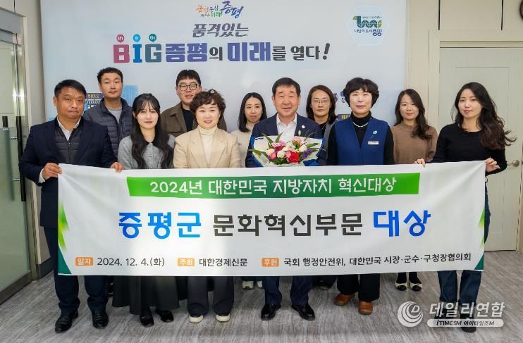 데일리연합 (SNSJTV. 아이타임즈M) 이성용 기자 | 충북 증평군은 4일 서울 강남구 건설회관에서 개최된 ‘2024 대한민국 지방자치 혁신대상’에서 문화혁신 부문 대상을 수상했다.