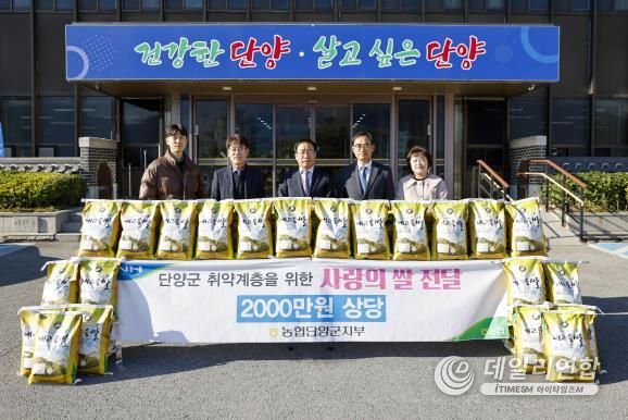 데일리연합 (SNSJTV. 아이타임즈M) 이성용 기자 | NH농협은행 충북 단양군지부가 연말연시를 맞아 단양군에 2,000만 원 상당의 쌀 7,150kg(10kg 715포)을 기탁했다.