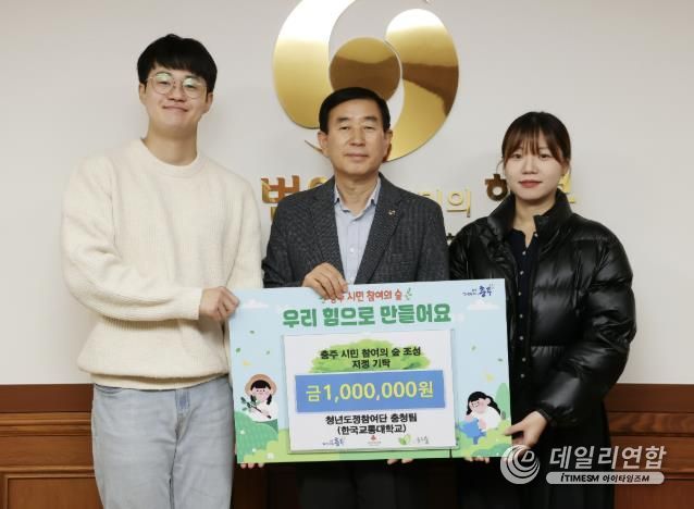 데일리연합 (SNSJTV. 아이타임즈M) 이성용 기자 | 한국교통대학교 4학년 학생 3명이 지난 4일 시민 참여의 숲 조성 성금으로 1백만 원을 기탁했다.