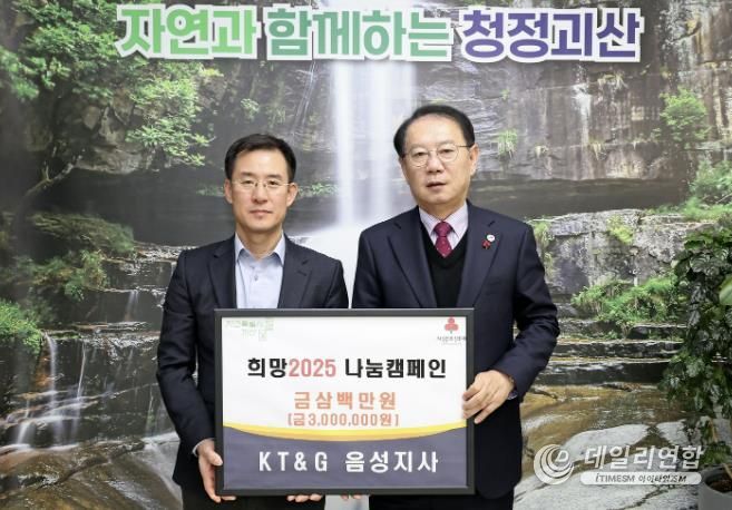 백종호 KT·G 음성지사장은 “작은정성이 지역사회에 도움이 되길 바라며, 지속적인 나눔을 통해 더 나은 세상을 만드는 데 기여할 수 있기를 기대한다.”며 기부의 뜻을 밝혔다.