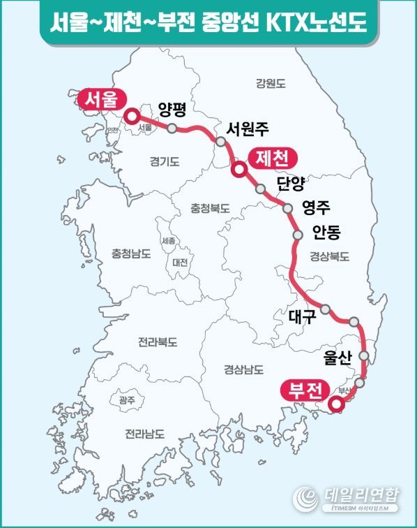 데일리연합 (SNSJTV. 아이타임즈M) 이성용 기자 | 서울역에서 제천역을 거쳐 부전역(부산)까지 연결하는 KTX 중앙선 고속철도의 완전한 개통으로 제천시를 관통하는 ‘중부내륙 고속철도 新 르네상스 시대’가 눈앞에 다가왔다.