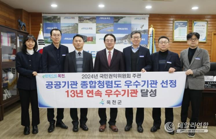데일리연합 (SNSJTV. 아이타임즈M) 이성용 기자 | 옥천군이 국민권익위원회 주관 ‘2024년도 공공기관 종합청렴도 평가’에서 2등급을 받으며 13년 연속 우수기관을 달성했다고 20일 밝혔다.