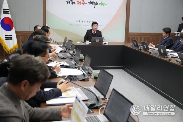 이날 이범석 청주시장 주재로 신병대 부시장과 실·국·소·본부장이 참석한 가운데, 중대재해처벌법을 근거로 16개 이행항목에 대한 점검평가와 향후 대책을 논의했다.