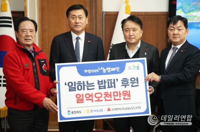 데일리연합 (SNSJTV. 아이타임즈M) 이성용 기자 | 충청북도는 충북농협이 24일 충북도청에서 생산적 노인 자원봉사활동인 ‘일하는 밥퍼’ 사업을 지원하기 위하여 1억 5천만 원을 충북사회복지공동모금회에 기탁했다고 밝혔다.