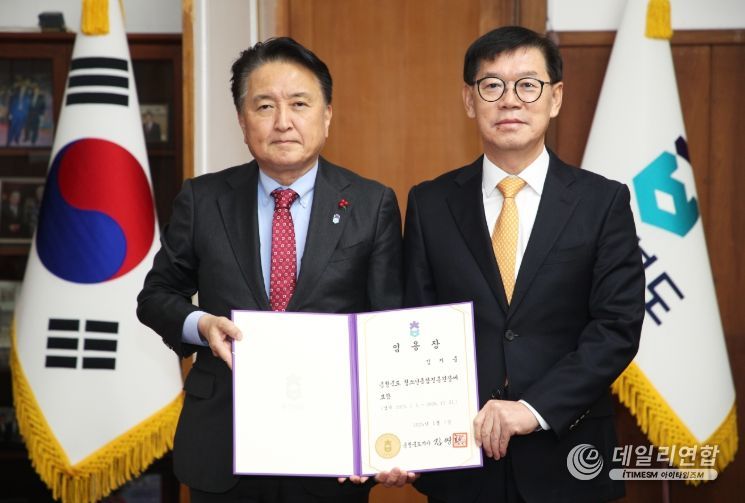 도는 이날 충북도청 여는마당에서 신임 김자중 원장에게 임용장을 수여했다. 임기는 오는 2025년 1월 1일부터 2026년 12월 31일까지 2년이다.