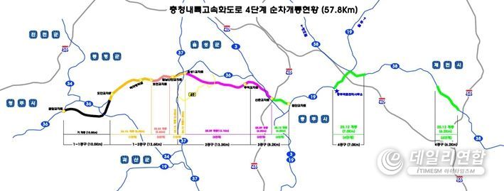 한편, 증평군 도안면 화성리 동양시멘트에서 원남면 보천교차로까지 8.0㎞ 구간과 음성군 음성 원남산단교차로에서 음성1교차로(국도37호선)까지 3.2㎞ 구간을 포함한 11.2㎞ 구간이 금년도 12월 31일 우선 개통된다.