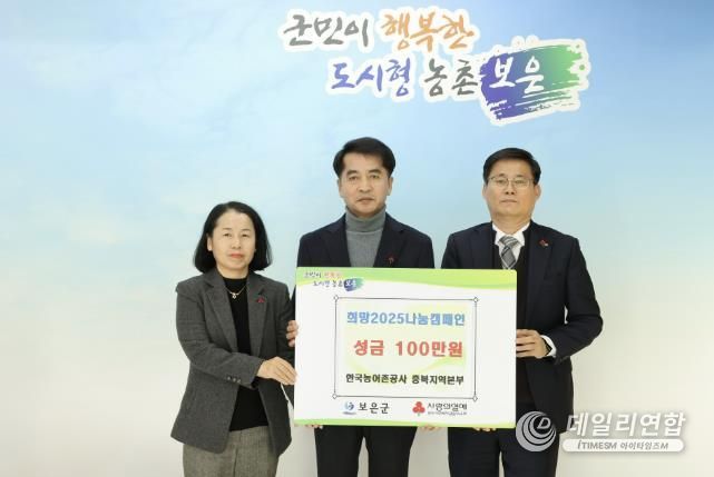 데일리연합 (SNSJTV. 아이타임즈M) 이성용 기자 | 한국농어촌공사 충북지역본부는 지난 27일, 보은군청을 방문해 희망나눔성금 100만원을 기탁했다.