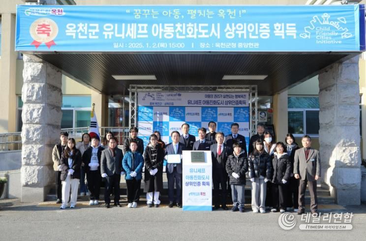 데일리연합 (SNSJTV. 아이타임즈M) 이성용 기자 | 옥천군이 유니세프 한국위원회로부터 ‘아동친화도시 상위 인증’을 획득함에 따라 2일 상위 인증 현판식을 열었다.