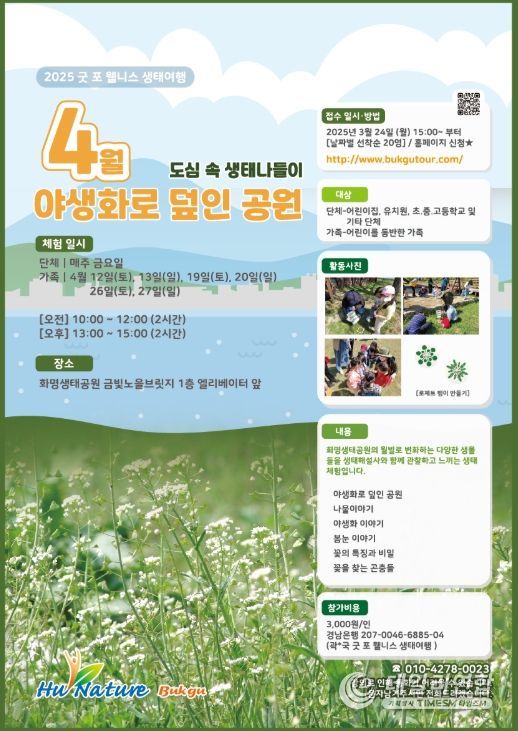 데일리연합 (SNSJTV. 타임즈M) 박영우 기자 | 부산 북구는 오는 4월 12일부터 화명생태공원 연꽃단지 일원에서 ‘굿포 웰니스 생태여행’ 일환으로 ‘도심 속 생태나들이’ 프로그램을 주말마다 운영한다.