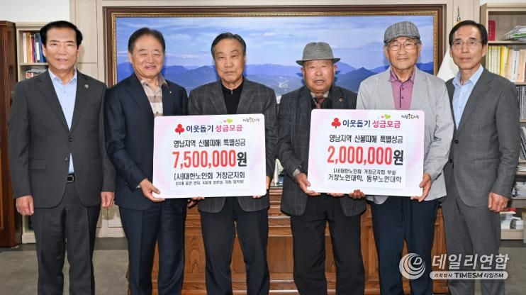 데일리연합 (SNSJTV. 타임즈M) 이동수 기자 | 거창군은 (사)대한노인회 거창군지회에서 영남지역 산불 피해 특별성금 950만 원을 경남사회복지공동모금회에 기탁했다고 밝혔다.